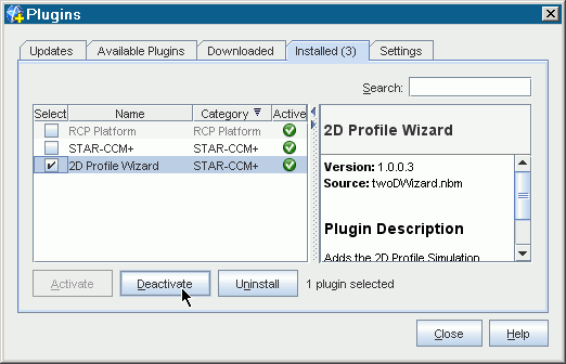Simcenter STAR-CCM+ 可以停用不需要的已安装插件,以便最小化启动时间并节省内存。