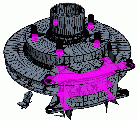 其余接触零部件对的表面被压印并突出显示。此时所有零部件被共形连接,零部件之间的接触表面上的面被合并。