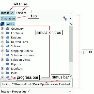 - 零个或多个已命名的模拟窗口(每个窗口运行一个模拟;以下示例中的进气)