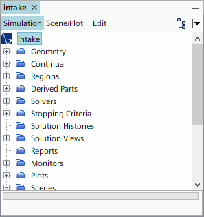 此窗口显示已命名的模拟树,其中包含表示打开的模拟的各种对象的节点。
