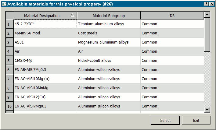 此时将显示一个对话框,其中将列出相应属性的所有可用材料。
