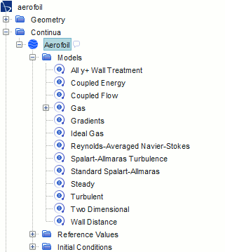 在连续体节点内,翼型节点的颜色已从灰色变为蓝色,这表明已激活模型。