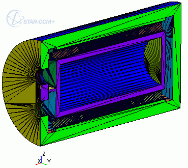 出现根据块分割部件表面对话框。属于固体部件的表面根据其块定义进行颜色编码。所有其他表面均透明,如下所示,其中显示所有网格已激活: