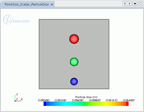 在属性中,选择屏幕点尺寸基于的标量场函数。相对于网格的总体尺寸计算屏幕上的颗粒尺寸。此情况的一个放大示例如下所示。