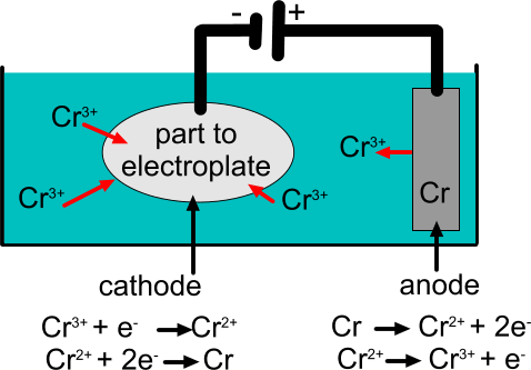 由于电解液是水性液体,所以氢离子比铬离子更易流失,电流通过电解液还会在阴极表面产生氢气。