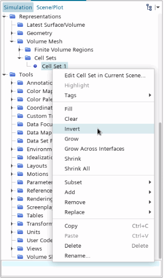 要访问网格单元集反转选项,右键单击所需网格单元集节点,然后选择弹出菜单中的: