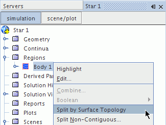 | 注 | 仅当存在面网格表示时,才可以使用“根据表面拓扑分割”。 删除所有体网格表示以访问此选项。 |