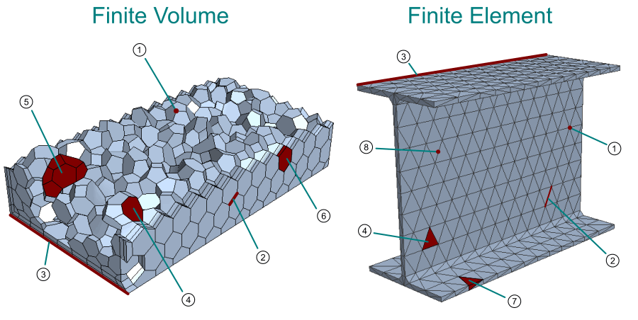 在三维中,网格单元是在空间中定义封闭体积的一系列面的有序集合。在二维中,网格单元是由一系列节点的有序集合组成的区域。在 Simcenter STAR-CCM+ 中,将为使用有限体积法的求解器生成网格单元。
