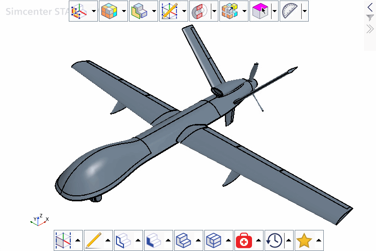 模拟提供了无人驾驶飞机 (UAV) 的 CAD 模型。要使用表面自由形式操控几何,首先将 CAD 模型导入 3D-CAD。