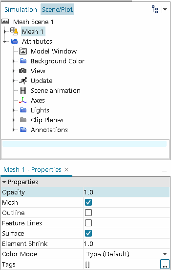 更改表面不透明度 通过更改表面不透明度,可以查看面网格或体网格内的内部结构。 要更改表面不透明度: 确保已打开网格场景。 在资源管理器窗格中,单击场景/绘图。 选择网格 1 节点,然后设置不透明度属性。 值 1 将生成不透明的表面。值越低,透明度越高 表面和网格线显示为透明,并以较深的阴影显示内表面。