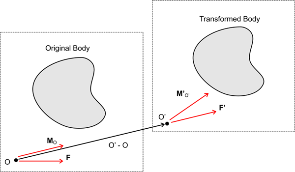 - 计算对于原始力矩原点反映的力的力矩以获取平移项。
