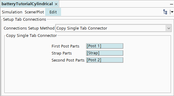 - 在设置极耳连接“编辑”选项卡中,单击第一个接线柱零件属性的右侧。