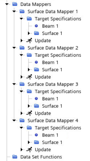 要在 1D 梁和 Simcenter STAR-CCM+ 叶片边界之间交换数据,可以创建数据映射器。每个区域都需要一个映射器。将映射器分配给相应区域时,Simcenter STAR-CCM+ 会自动定义每个数据映射器的源、目标和函数。