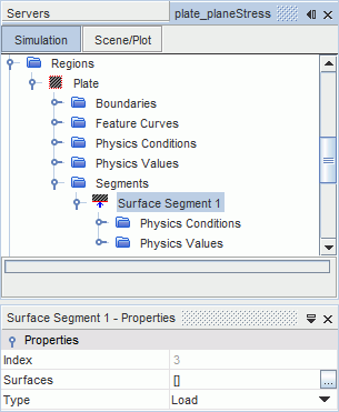 利用段表面属性,您可以指定零部件表面集合。利用类型属性,您可以指定应用于选定零部件表面的条件类型(负载或约束条件)。