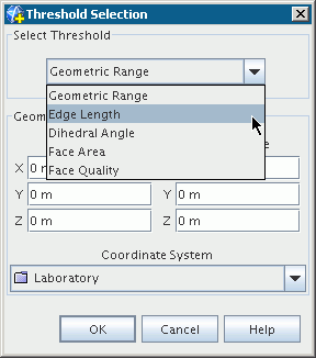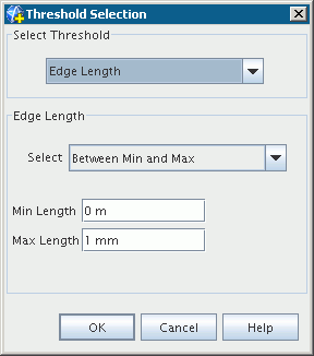 使用边长阈值时,在阈值选择对话框中指定最小边长和最大边长。
