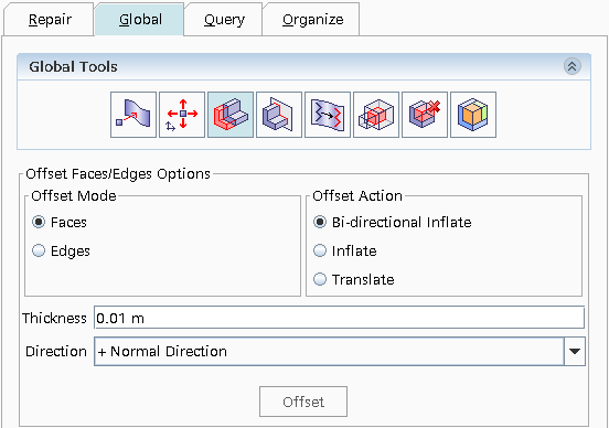 全局工具设计用于模型的较大部分,而不是单独的面、边和节点。