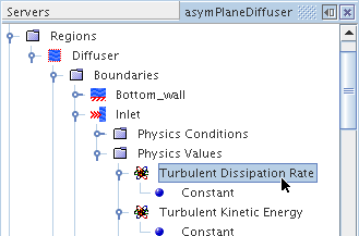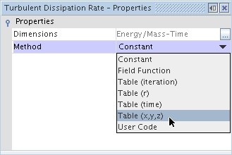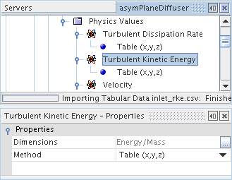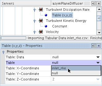 此操作会使分布节点内的方法节点更改为表格法节点。 其标签与下拉列表中的选择相匹配(在此示例中为)。 选择该节点,然后将表属性设为表文件的名称。 在此示例中,名称为 inlet_rke。
