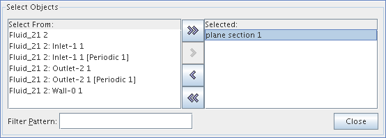 此对话框的工作方式与用于零部件选择的对话框相同。 在此示例中,选择了 Velocity: X-Component(速度:X 分量)、湍动能和湍流耗散率。