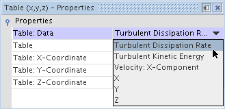 如前所示,将表属性设为表文件的名称。 然后将表:数据属性设为标量值的列(在此示例中为 Velocity: X-Component(速度: X 分量))。