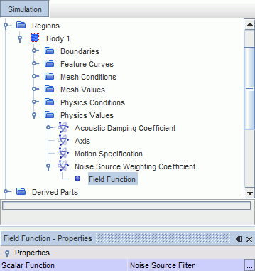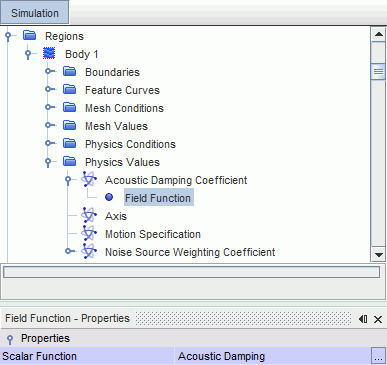 选择场函数节点,并将标量函数属性设为先前创建的 Acoustic Damping(声学阻尼) 场函数。
