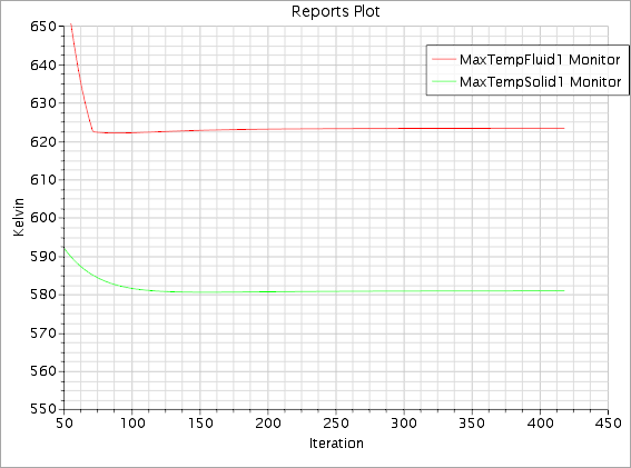 - 查看报告绘图屏幕以查看流体和固体的最高温度监视器图。