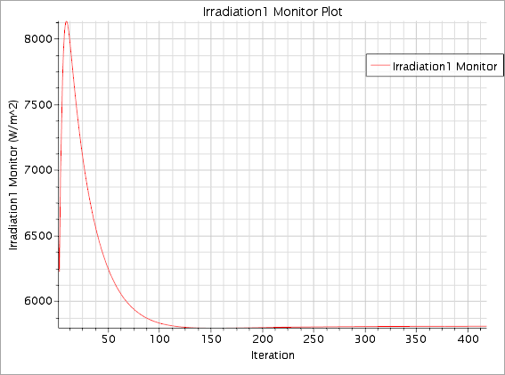 要在计算结束时查看固体流体交界面处的辐射变化,请激活 Irradiation1 监视器绘图屏幕。
