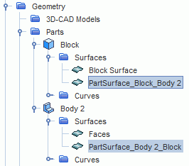保留默认高级参数时,工具会通过每个已压印部件的共形网格生成新的部件接触,它代表两个部件之间的公共表面。可以在模拟选项卡中查看新的表面。