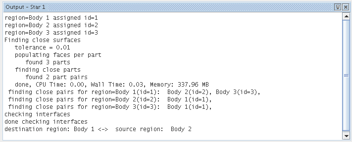 发现对完成后,输出窗口将显示基于每个部件找到的所有对的总结。输出窗口会在先前合并的对旁边显示文本 MERGED。可以通过手动选择源面和目标面来多次合并和压印部件对,但自动查找不会返回先前合并的部件对