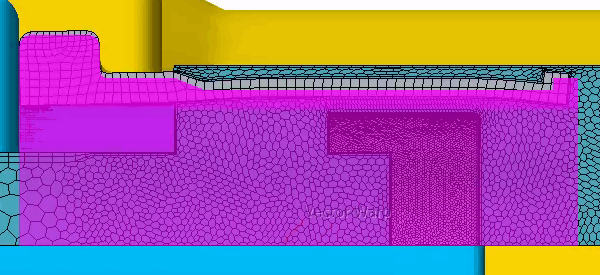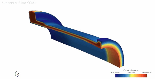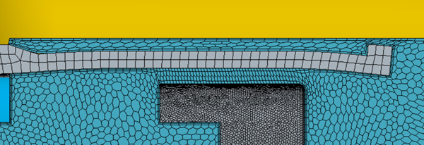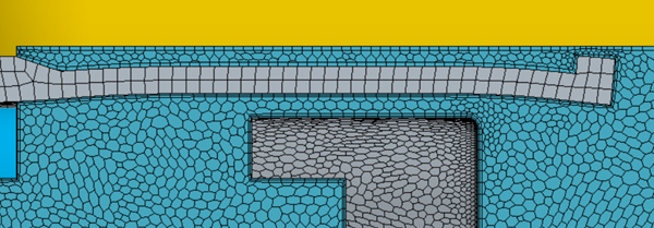 When you apply the pressure load,the rubber sleeve deforms. This deformation results in some fluid mesh cells being squashed or stretched, reducing the mesh quality in this region. To improve the fluid mesh for further analysis, you remesh the fluid region.