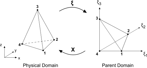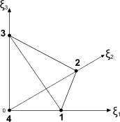 下面介绍线性四面体和六面体单元的形状函数。 使用自然坐标定义局部坐标系: