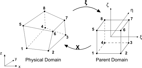 父域和全局物理域之间的局部到全局映射可确保相邻单元之间的连续性。
