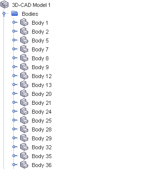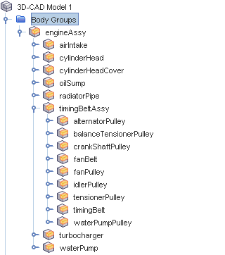 所有体根据导入零部件的原始层次结构或 3D-CAD 中创建的层次结构在体组中进行组织。