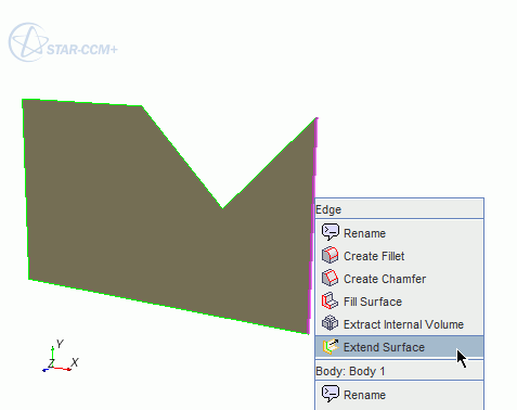 延伸表面特征将延伸指定的面或自由边,同时保持源表面的整体形状和相切。只能延伸片体上的面和自由边。