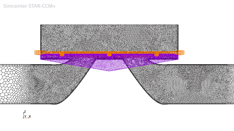 - 为流体背景和流体重叠部分生成具有棱柱层的多面体网格,并在受隔膜变形影响的区域进行网格细化。