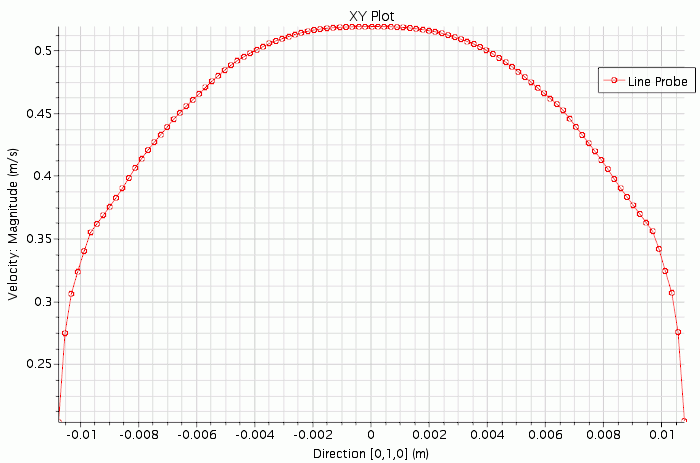 管道流体模拟中的常见绘图为速度分布。在 Simcenter STAR-CCM+中绘制此分布时,需要先创建一个线探头衍生零部件,然后在单个 XY 绘图中参考该零部件。