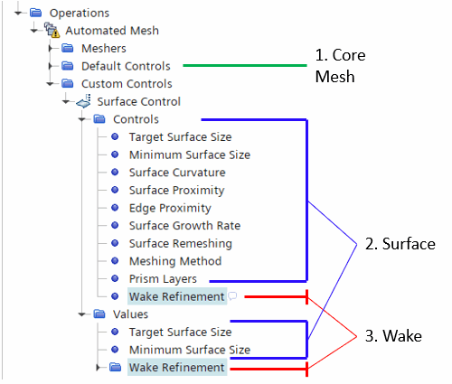 - 如果要保留除尾流细化之外的所有“面控制”或“曲线控制”设置,则选择节点,或者节点,然后停用指定尾流细化选项。