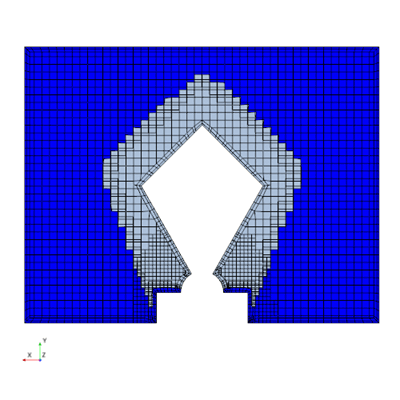注 此时,孔切削算法要求重叠边界闭合的方向。在本例中,此方向为 +Y 方向。
