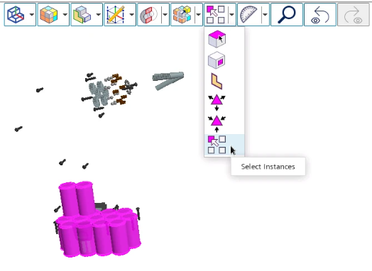 - To view specific instanced faces, edges, vertices, or bodies, select .