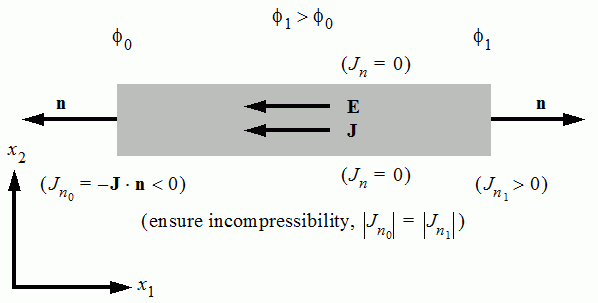 在域边界处,求解必须满足定义电势 的狄利克雷边界条件,或者满足定义与边界垂直的电势梯度 分量的诺伊曼边界条件。以下实现会应用于电势 (Eqn. (4277)) 和复电势 (Eqn. (4278))。对于复电势,边界和交界面处指定的物理量通常十分复杂。