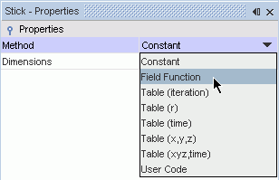 By default, the probability of each mode under Mode Probabilities is set to be constant with a value of 0.0. Although you can use the usual options for a scalar profile to set the values, remember that the total sum of probability must be less than or equal to one. The probability of a certain event is 1, and the probability of an impossible event is 0. Choosing the Field Function method allows the probability to be expressed in terms of local conditions, such as impingement velocity and wall temperature.
