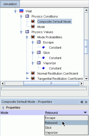 Selecting Composite mode adds a physics condition Composite Default Mode that allows you to select the main boundary interaction mode.