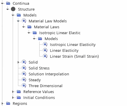 - 提供的物理连续体对各向同性线性弹性材料建模。模拟为稳态。在本教程中,您将选择一个附加模型来计算正则模态。
