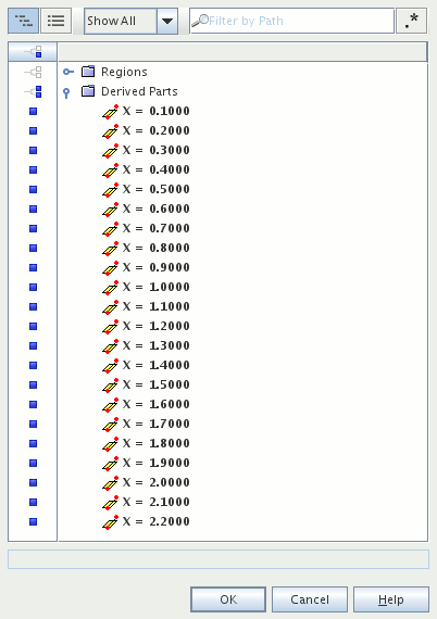 - 在速度分布 - 零部件对话框中选择衍生零部件节点。