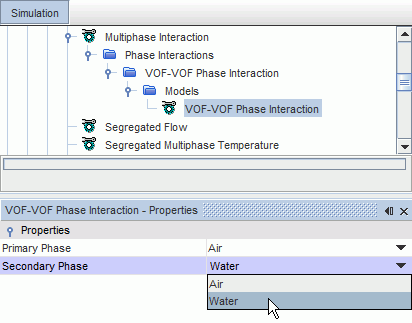 - VOF-VOF Phase Interaction model, which controls the interaction between two VOF phases.