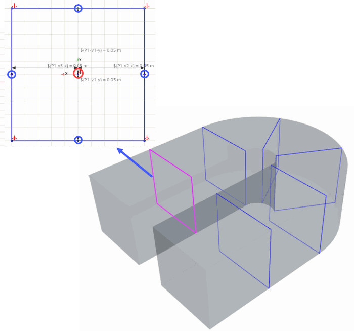 - 通过更改坐标参数修改草图平面内的所有中间边点(用蓝色标记)。