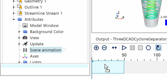 如果有来自先前保存的模拟的场景动画动画(如流线),则可以将它们放入动画剧本并进行编辑。
