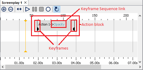 动作块将添加到时间线,其中包含指向关键帧序列的链接,控制您拖放到编辑器上的属性。 -