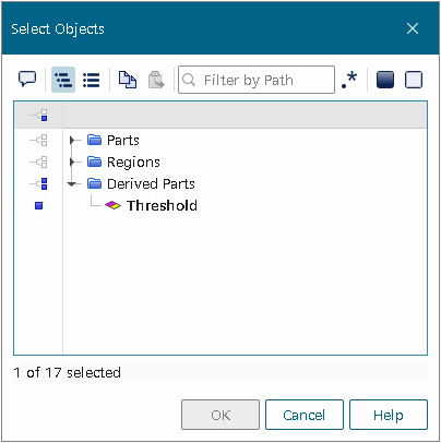 在这种情况下,输入部件列表包含先前创建的阈值部件。要选择相关节点,单击选择并使用选择对象对话框: