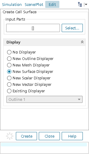 此时将显示创建网格单元表面对话框,可用于选择输入部件及新部件的显示选项。
