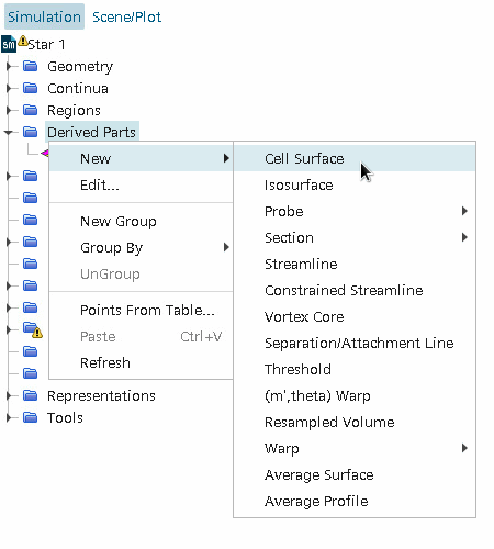 要可视化阈值表面旁的网格单元,通过右键单击节点,使用阈值创建新网格单元表面的衍生部件。从关联菜单中选择。